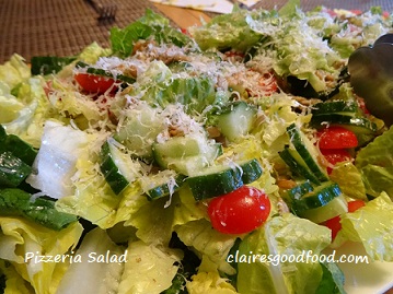 I ate this salad in two different pizza places in the seventies. I know the ingredients may make you cringe, but close your eyes and trust me. This is really good with pizza and spaghetti.