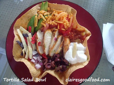 Use tortillas to make a simple but impressive container for your main dish salad. Including the Margarita Chicken. |